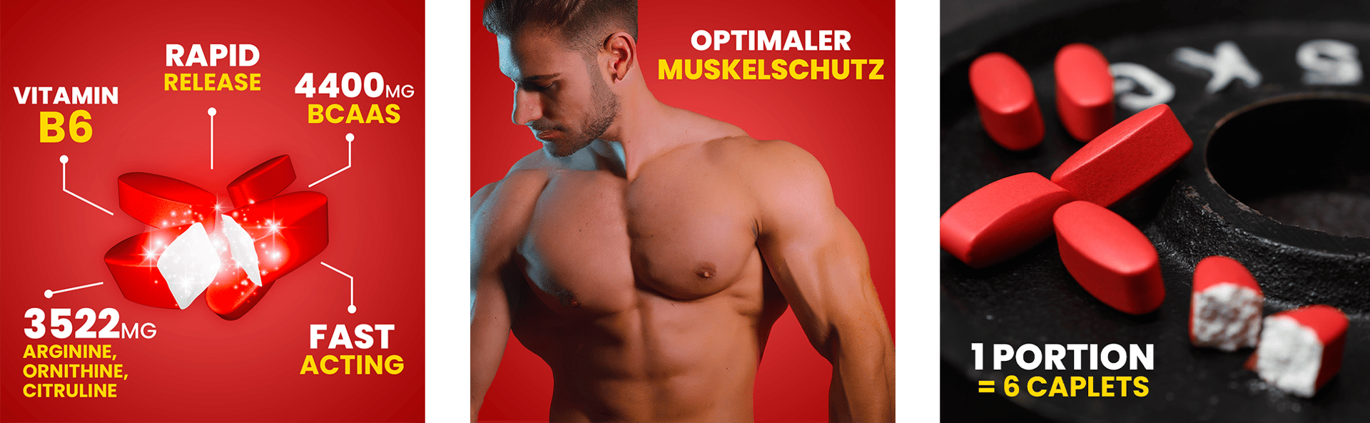 Šakotosios grandinės amino rūgštys (BCAA) (leucinas, valinas ir izoleucinas) yra šakotosios grandinės amino rūgštys ir negali būti pasigamintos paties organizmo. Todėl jas reikia gauti su maistu ir (arba) papildais. Jos ypač svarbios raumenų auginimui ir palaikymui ir gali būti tiesiogiai apdorojamos raumenyse. Tabletėse taip pat yra L-arginino, L-ornitino, L-citrulino ir L-lizino. L-argininas yra pusiau nepakeičiama amino rūgštis. Žmogaus organizmas gali pats sintetinti šį azoto oksido pirmtaką. Tačiau intensyvių raumenų auginimo treniruočių fazių metu reikia pasirūpinti pakankamu tiekimu, nes poreikis gali viršyti paties organizmo gamybą.