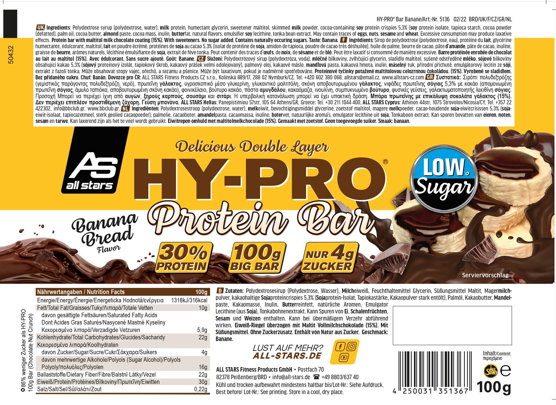 Hy-Pro batonėlis – absoliuti All Stars klasika – dabar atnaujinto dizaino ir su mažiau cukraus. Sukurtas rimtiems sportininkams, kurie renkasi daug baltymų turintį užkandį, kai norisi saldaus, ir kurie dabar gali dar labiau pasinaudoti sumažintu cukraus kiekiu naujuose ir itin gardžiuose skoniuose. Dėl maistinių medžiagų derinio batonėlis idealiai tinka kaip greitas užkandis po treniruotės, kai dar ne laikas kitam valgymui.
