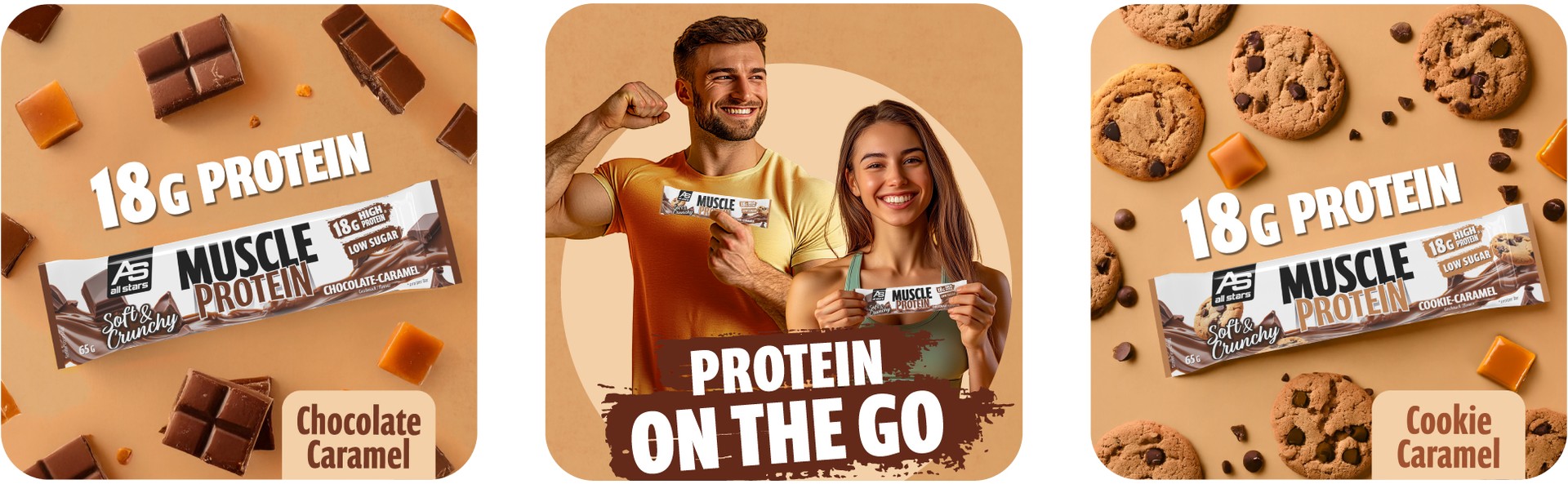 Naujasis ALL STARS Muscle Protein Bar baltymų batonėlis suteikia 18 g aukštos kokybės baltymų iš pieno ir išrūgų baltymų su tik šiek tiek cukraus – puikiai tinka užkandžiui!